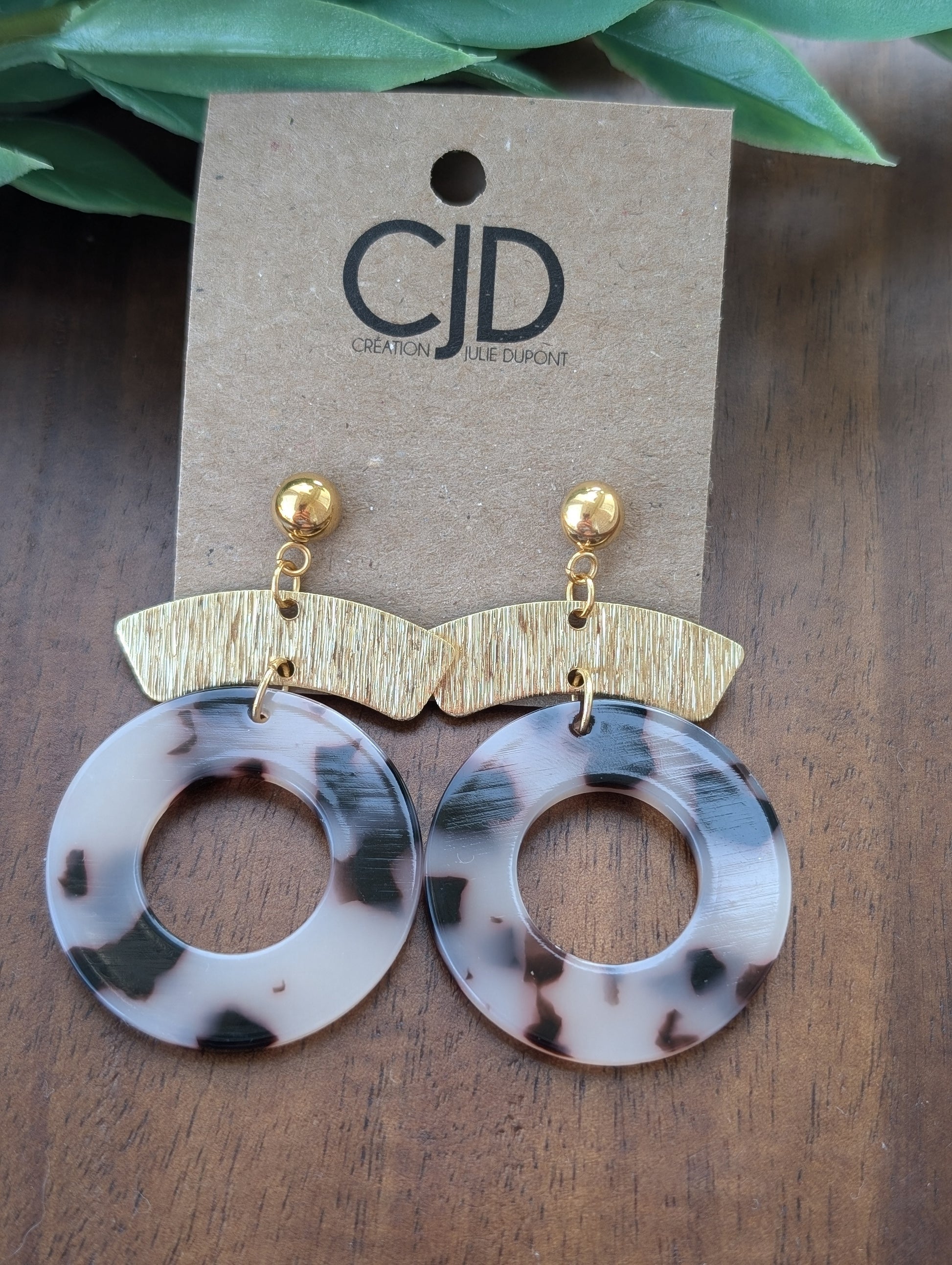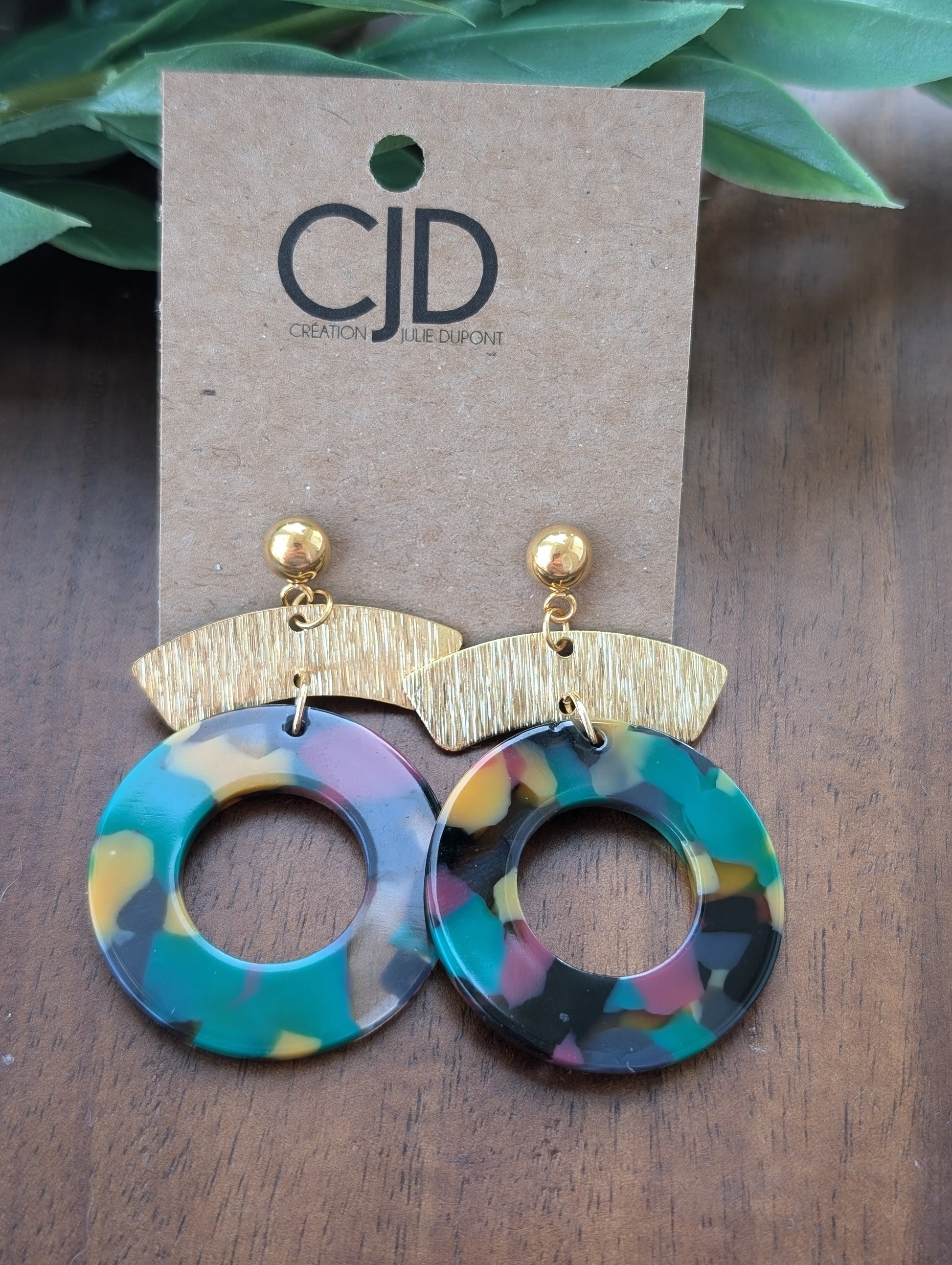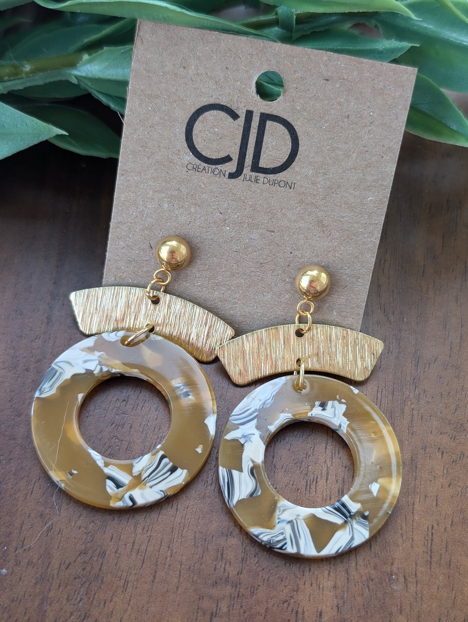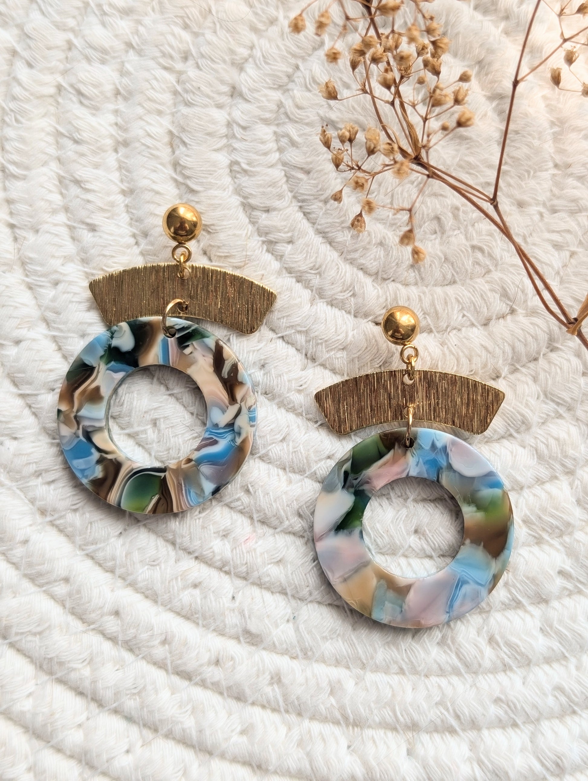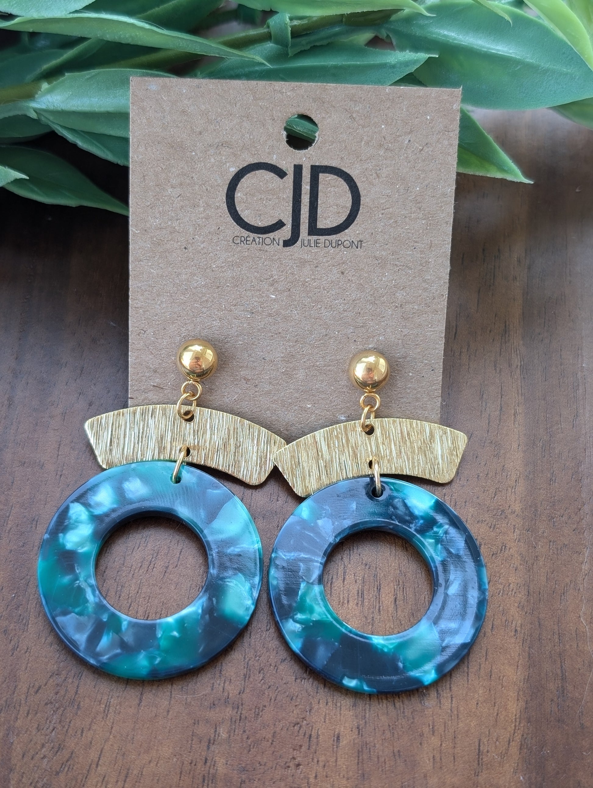 Boucles d'oreilles acetate et laiton, bijoux acetate de cellulose, acetate earrings (BO-1875)