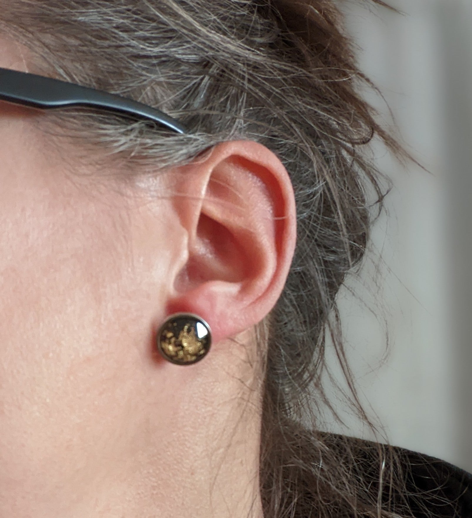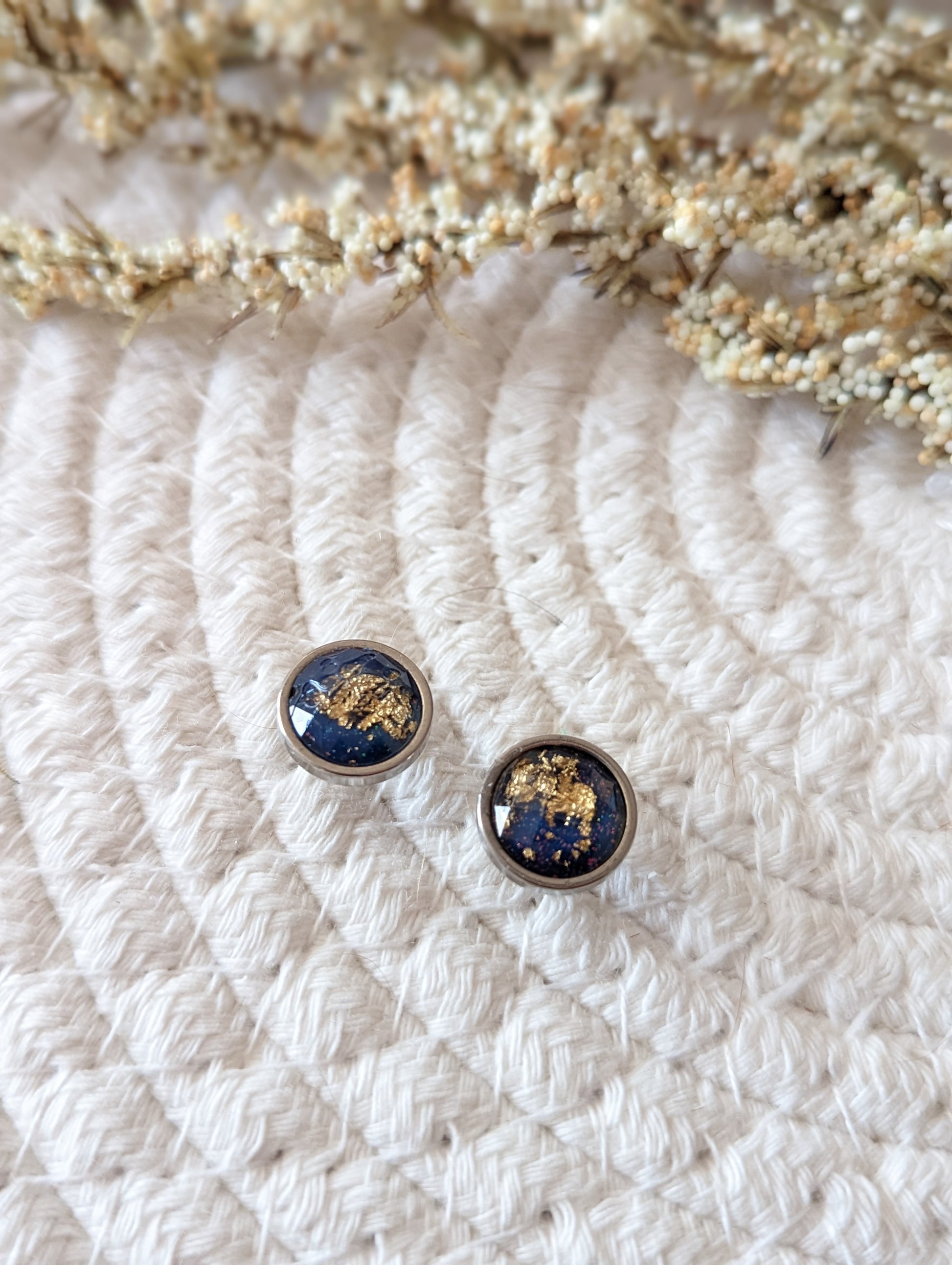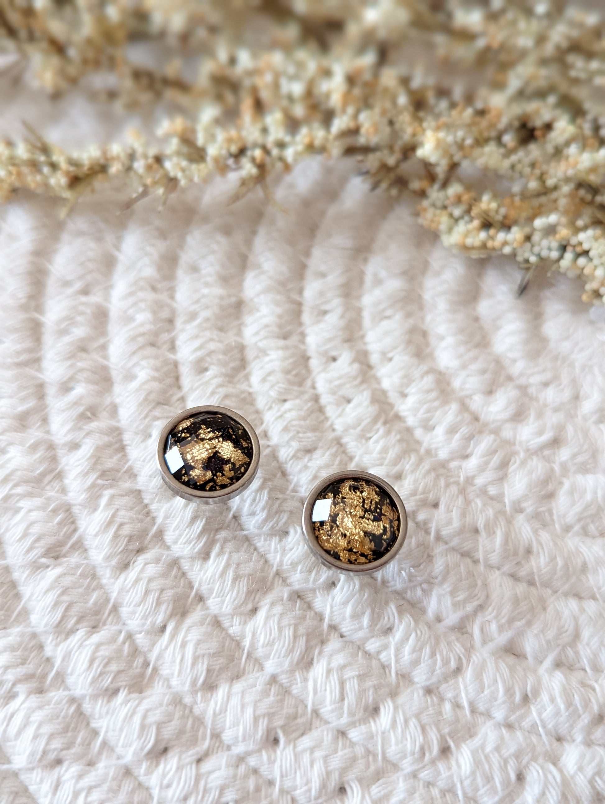 boucles d'oreilles feuille d'or résine // resin stud // stainless earrings (BO-1564)