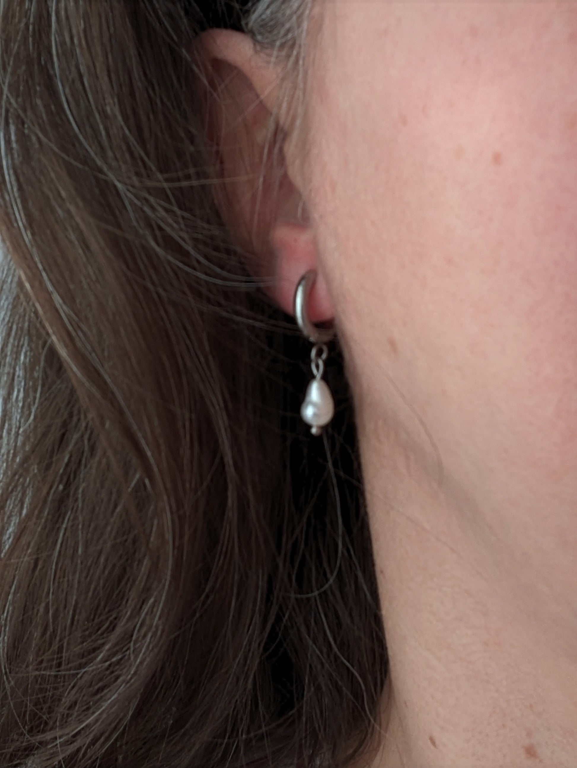 Boucles d'oreilles de style huggies en acier inoxydable avec pendentif de perle d'eau douce.