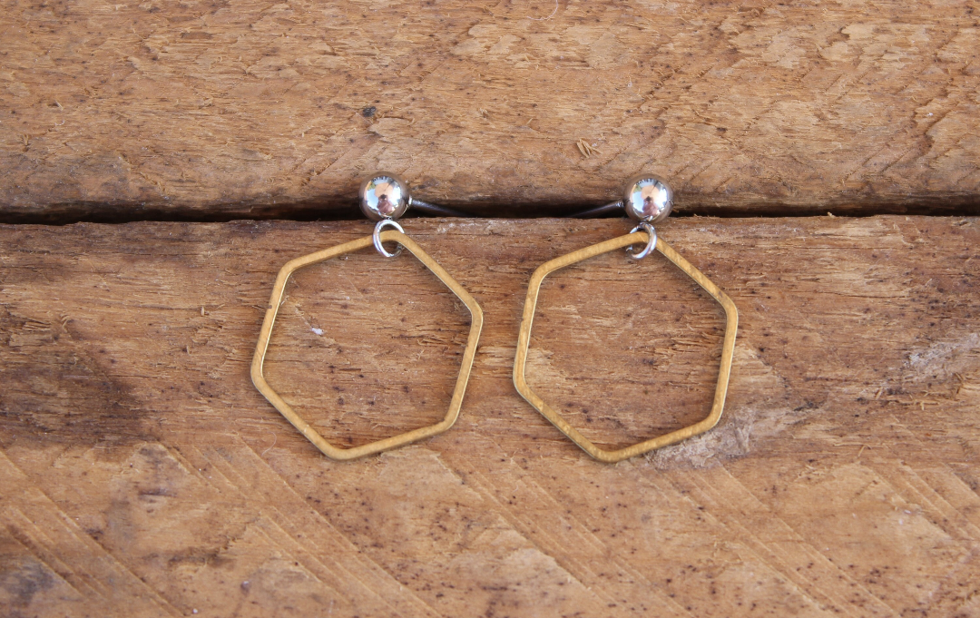 Boucles d'oreilles minimalistes hexagone (bo-1150