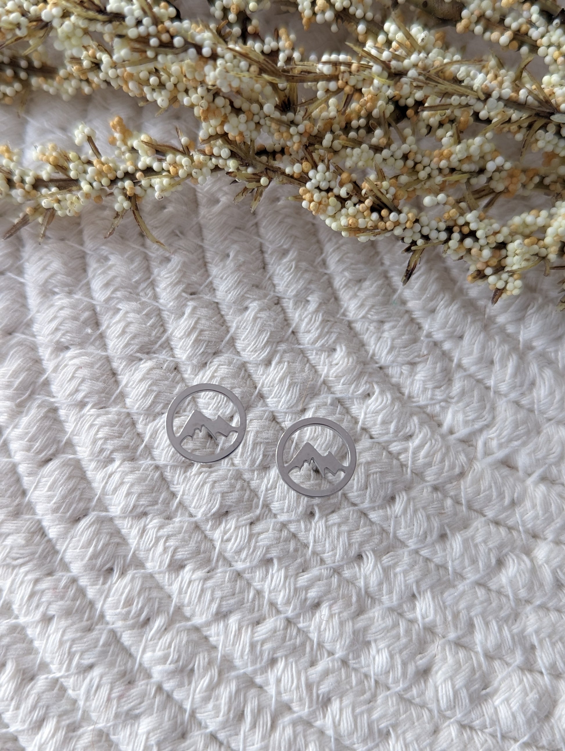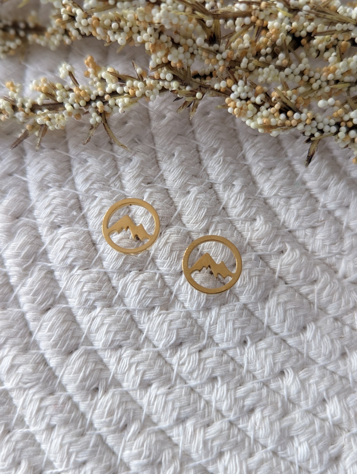 Boucles d'oreilles montagne rond // mountain stud earrings // stainless steel earrings // minimalist jewelry // (bo-1786)