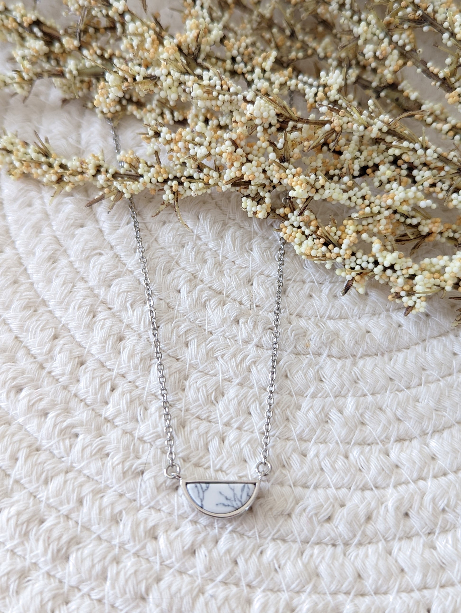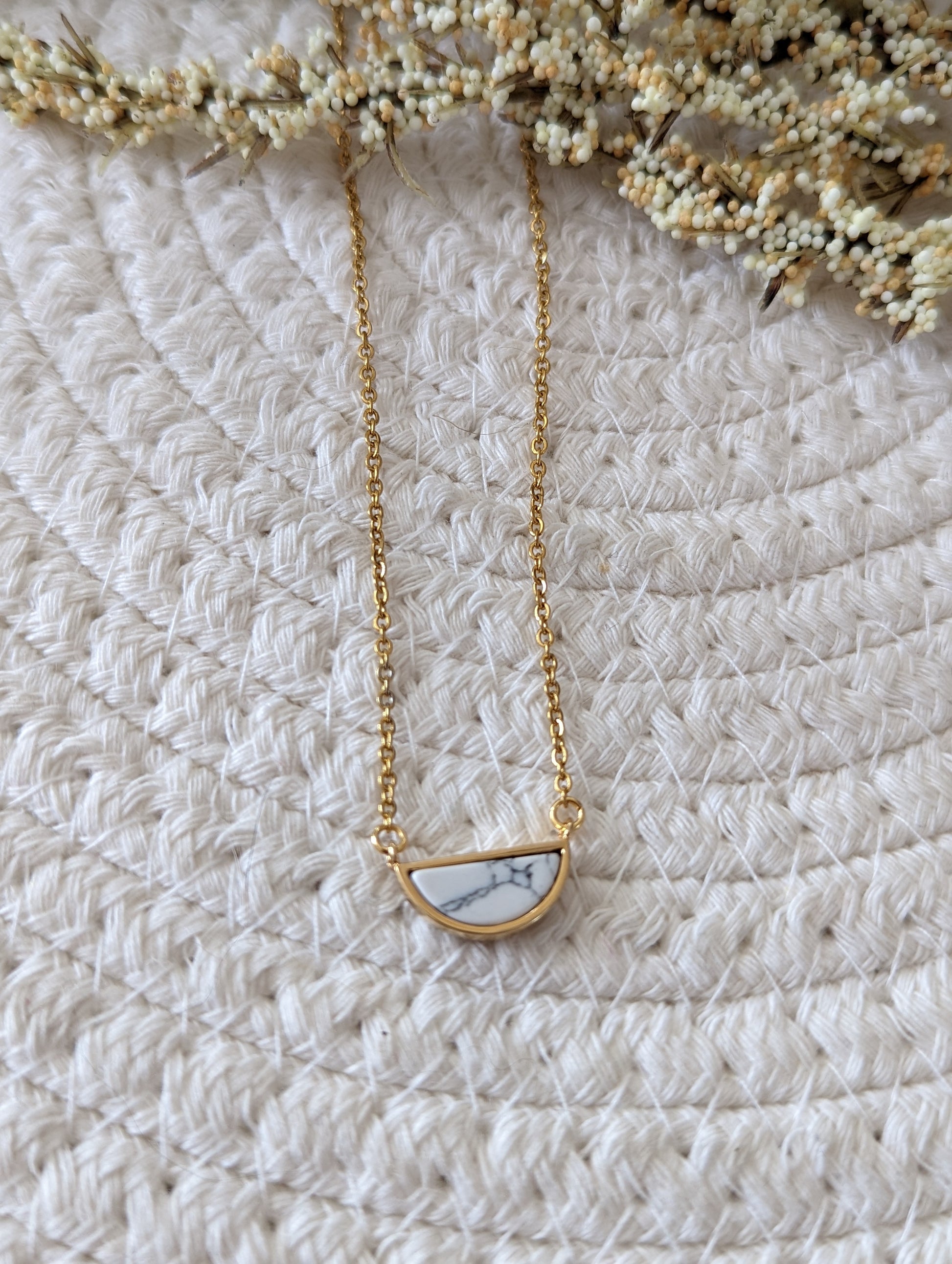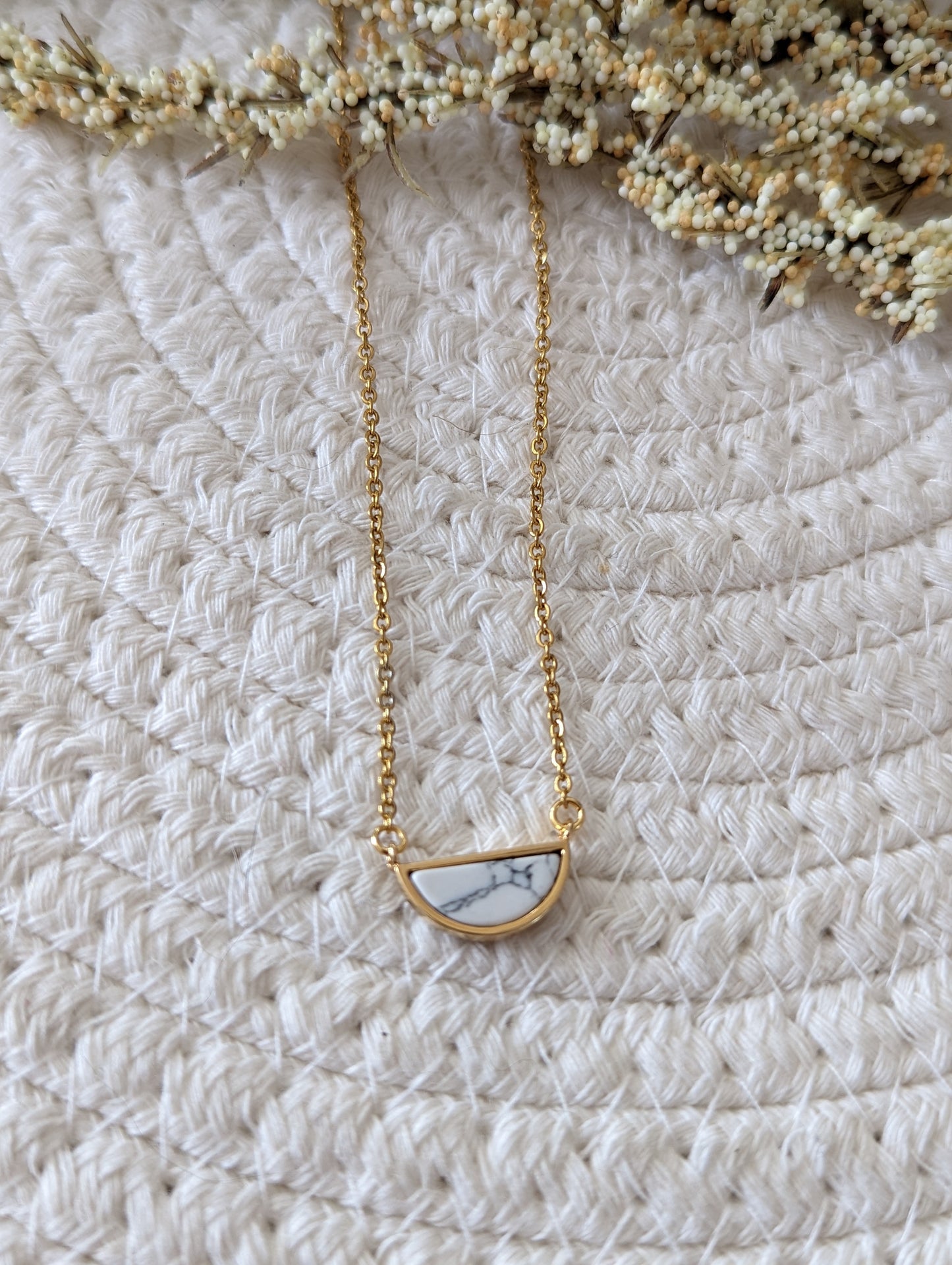 Collier minimaliste demi-lune marbre // minimalist necklace // bijoux pour elle // marble necklace (co-152)