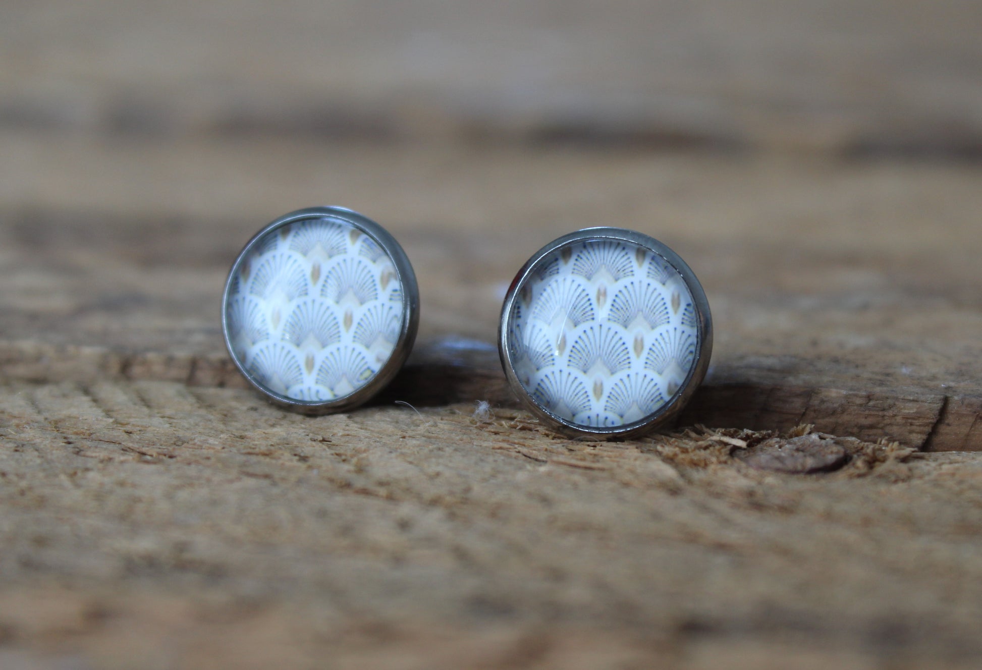 Petites merveilles motif // pattern earrings // cute glass cabochon (BO-1530)