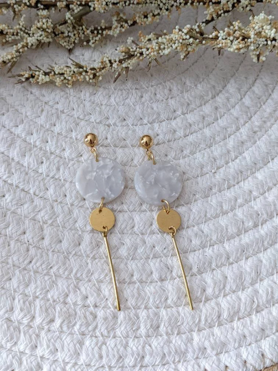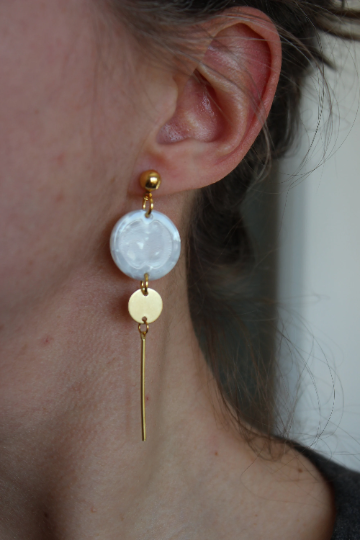 Boucles d'oreilles acrylique et laiton // acetate earrings // geometrique // raw brass earrings // cadeau pour elle // (bo-1500)