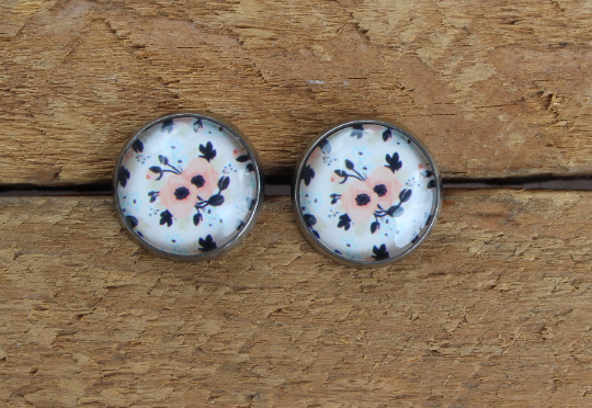 Petites merveilles fleurie // floral earrings // peach flower earrings // cute glass cabochon (BO-1586)