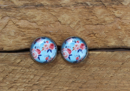 Petites merveilles fleurie // floral earrings // salmon pink flower earrings // cute glass cabochon (BO-1588)